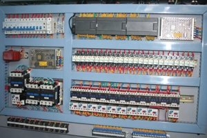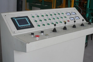 O PLC e a tela sensível ao toque são produtos da Siemens, Alemanha. Um gabinete de controle eletrônico controla tanto a máquina de fazer blocos quanto o empilhador, o que facilita a operação e a realização de diagnósticos de falhas.