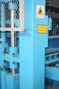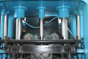 Existem cilindros de árvore no molde superior. O do meio garante a velocidade de levantamento e os outros dois de ambos os lados garantem a pressão do molde superior.