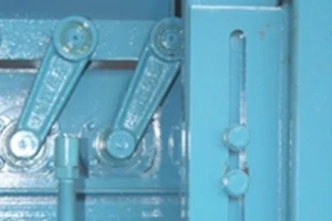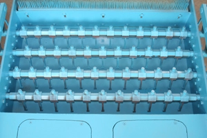 O sistema de desmoldagem síncrona que é acionado por engrenagens e correntes faz com que os dois cilindros de desmoldagem funcionem de forma síncrona e faz com que os moldes se movam