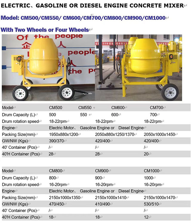 Para diferentes escalas de projeto, a Betoneira ZCJK oferece uma variedade de modelos: o pequeno modelo 200L é adequado para casas rurais autoconstruídas, endurecimento de pátios e outros cenários, flexível e móvel; o modelo médio 500 é adequado para manutenção de estradas municipais, construção comunitária e outros projetos, equilibrando eficiência e mobilidade; o grande modelo 1000L é adequado para projetos de grande escala, como construção de grandes fábricas e construção de pontes, atendendo às necessidades de mistura de alta produção. Além disso, ele suporta a personalização da capacidade do tambor de mixagem, potência do motor, modo de descarga e outras necessidades especiais, para realmente alcançar "personalização de acordo com a demanda, adaptação de cena".